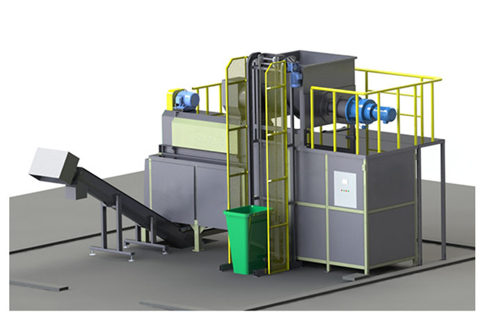 KBS-R係列餐廚(chú)垃圾處理設備采用一(yī)體(tǐ)化設計,整機由自(zì)動上料裝置、粉碎係(xì)統、擠幹(gàn)係統、油水分離、攪拌係統、生物降解係統、PLC自動電控係統、加熱係統和除臭係統組成。降低勞動力,節省人工,對周邊環境無任何影響。生成二氧化碳和水,真正實現餐廚垃圾就地化處理。