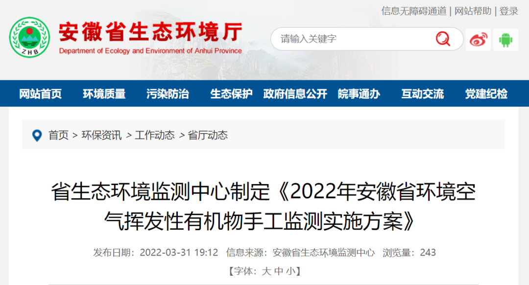 揮發(fā)性有機物(VOCs)是臭氧汙染的重(chóng)要前體物(wù),為積極推進環境空氣VOCs監測體係和能力建(jiàn)設,摸清生成臭氧的重點VOCs種類,掌握重點VOCs濃度水平和(hé)變化規律,支撐開(kāi)展臭氧汙染防治工作,按照生態環境部統一部署及省生態環境(jìng)廳相關工作要求,近日,安徽省(shěng)生態(tài)環境監測中心製定《2022年安徽省環境空氣揮發性(xìng)有機物(wù)手工監測實施方案》(以下(xià)簡稱《方(fāng)案》)。